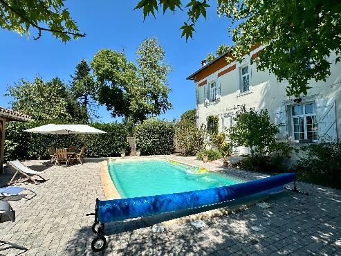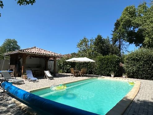 Une cave de 48 m², une piscine à l'abri des regards, un pool house et un chalet en bois l'agrémentent. L'ensemble se dresse sur un beau parc boisé de diverses essences, de 2500 m². La terrasse sur le pourtour de la piscine communique avec la cuisine permettant une fluidité entre le jardin et la maison.