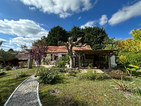 REF. 2212 : 22 minutes des plages, à ONESSE-LAHARIE, cette maison rénovée dégage une douce impression de vacances. Nichée sur un terrain dominant, elle offre un cadre paisible, entre verdure soignée, jardin d’agrément et potager généreux. À l’intérieur, un séjour chaleureux, une cuisine largement ouverte sur la nature, 2 chambres, une salle de bains et une salle d’eau composent un ensemble harmonieux et prêt à vivre. Plusieurs dépendances en très bon état.